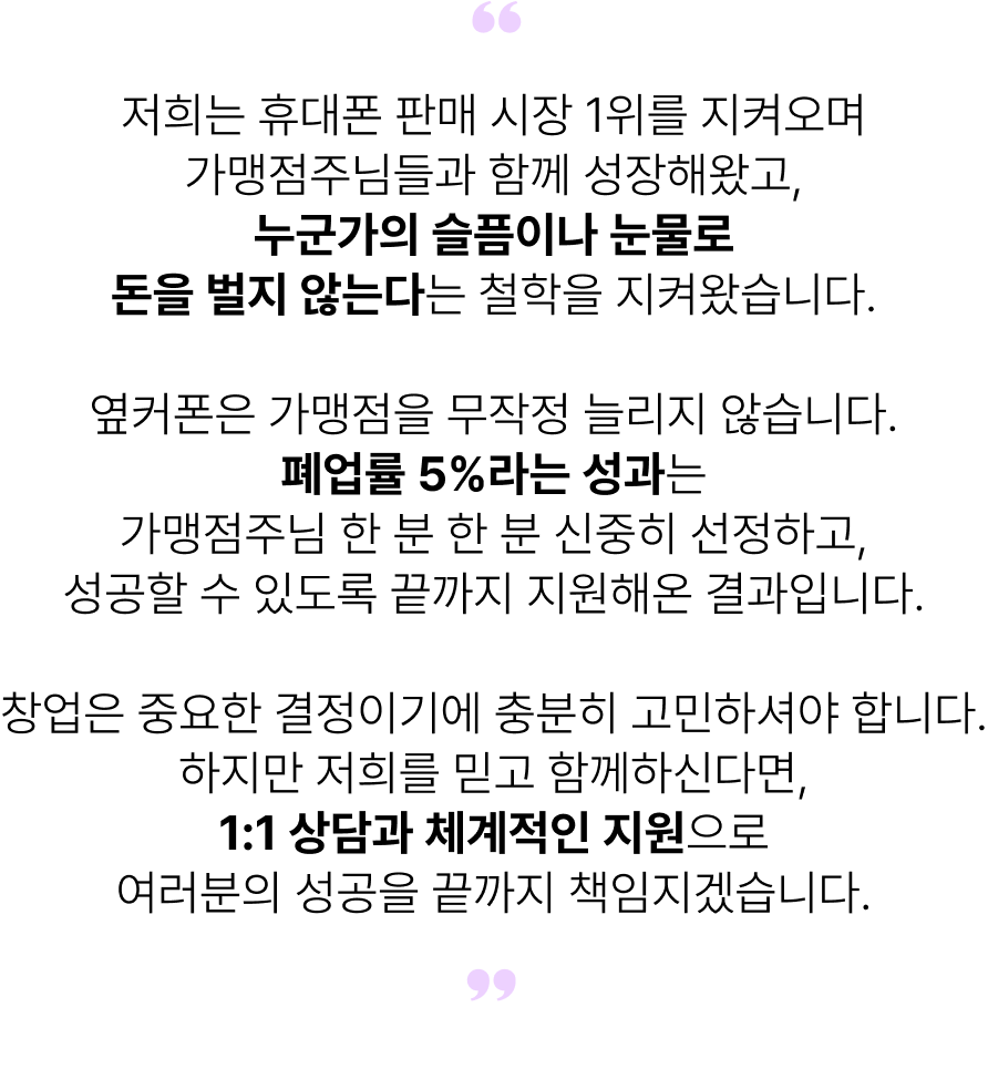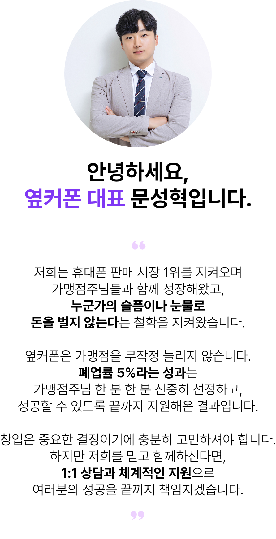 옆커폰의 창업 비용은 가맹비와 교육비 합쳐서 700만원입니다.